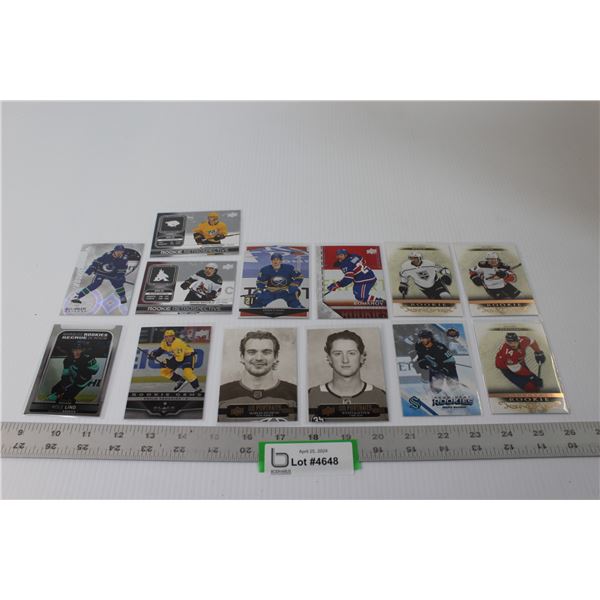 (14) Hockey Cards Various Players w/Rookie Editions: Lind, Byfield, Zegras, Romanov, Misc.