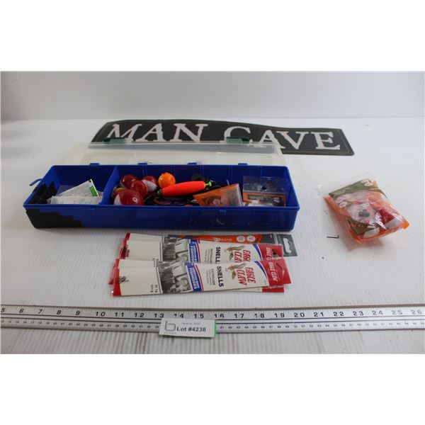 Man Cave Sign (24" x 5 1/2, Warped), Tacklebox with Fishing Essentials4238 - Man Cave Sign (24" x 5 1/2, Warped), Tacklebox with Fishing Essentials