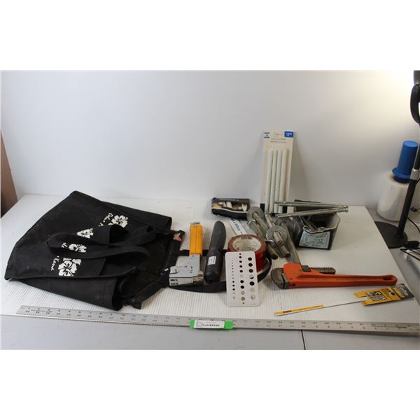 Bag of Shop Hardware/Tools - 14" Buck Bros. Pipe Wrench, (4) 3/4"x9.5" Pre Cut Ready Rod w/Nuts & Washers, (7) 1/2"x5" ...