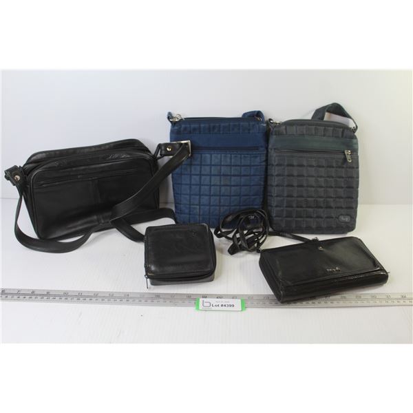 Black Leather Purse - (2) Lug Shoulder Purses - Hand Bag - Cosmetic Case w/Mirror