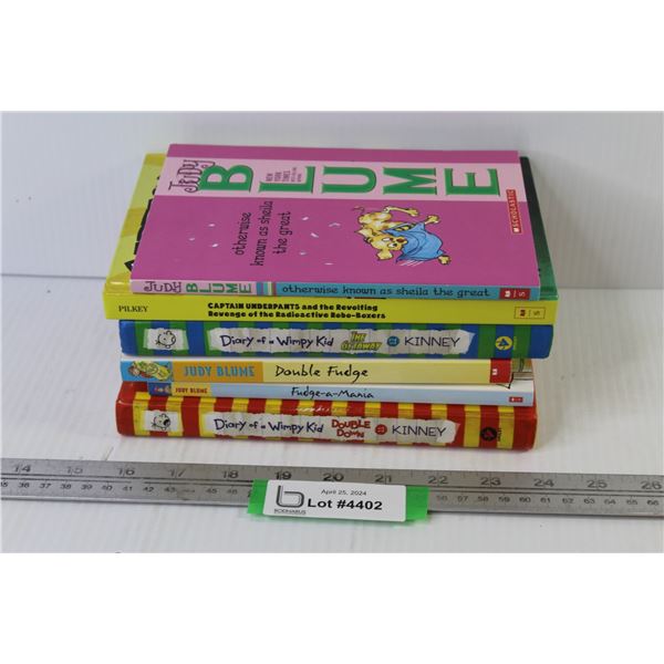 (6) Children's Books - Double Fudge - Diary of a Whimpy Kid - Judy Blume - Fudge O Mania - Captain Underpants