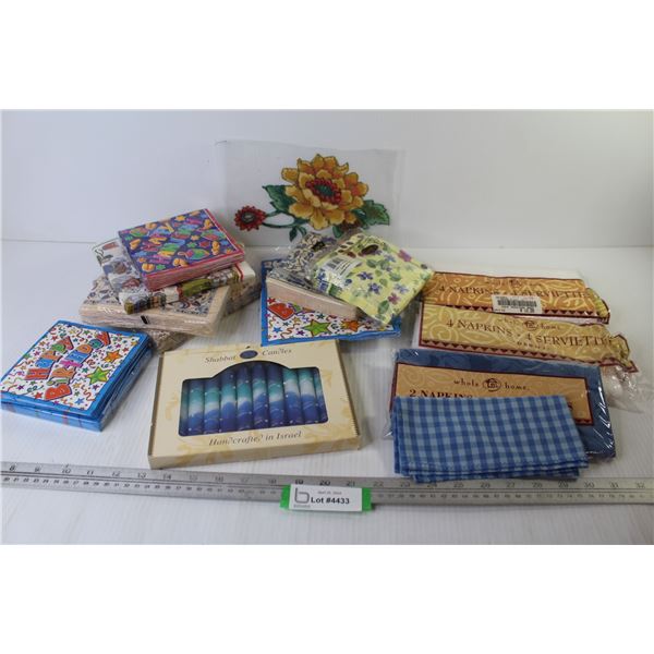 Paper Napkins - Cloth Napkins - Shabbat Candles - Stick-On Flower Patch