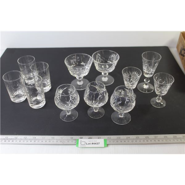 (6) Liqueur Crystal Glasses (6) Crystal Plates, Candle Holder