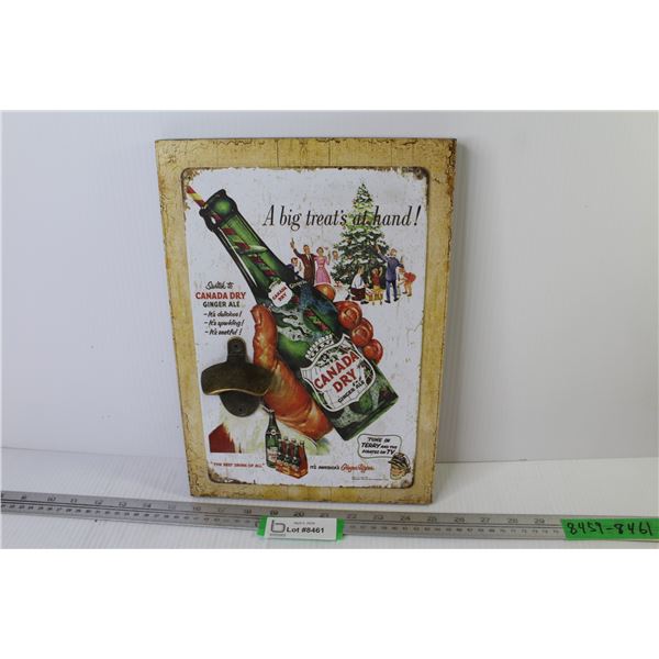 Canada Dry Metal Sign w/Bottle Opener - Mounted on Wood (13 1/2" x 9 1/2")
