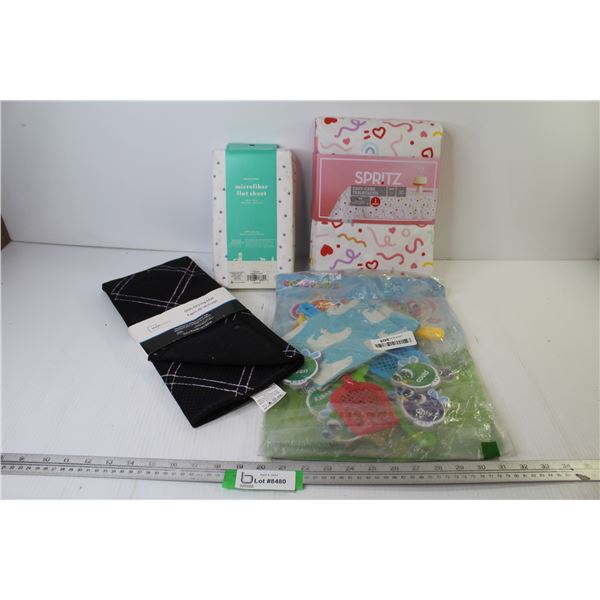 Spring Flower Play Set - Spritz Table Cloth - Microfiber Flat Sheet - Dish Drying Mat