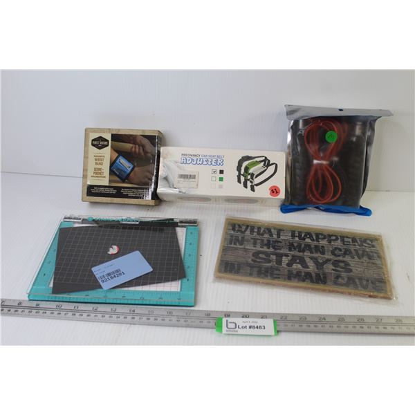 Stamp Positioning Tool (NIB) - Skipping Rope - Pregnancy Car Seat Belt Adjuster (NIB) - Magnetic Wristband (NIB) - Man Cave Sign (NIB)