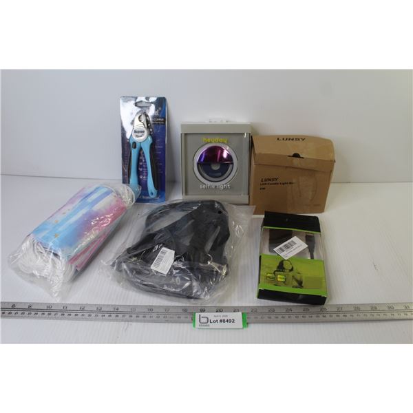 (4) LED 6w Bulbs - Heyday Selfie Light (NIB) - Cloth Masks (NIB) - Clear Cross Body Bag - USB to HDMI Adapter (NIB) - Pet Nail Trimmer (NIB)