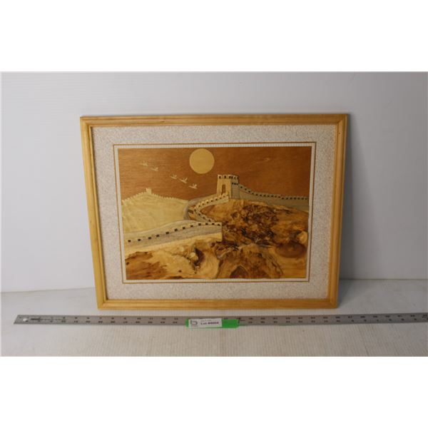 Framed Wooden Art of The Wall of China - 16" x 19 1/2"