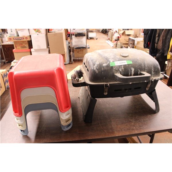 4 plastic stools and portable BBQ