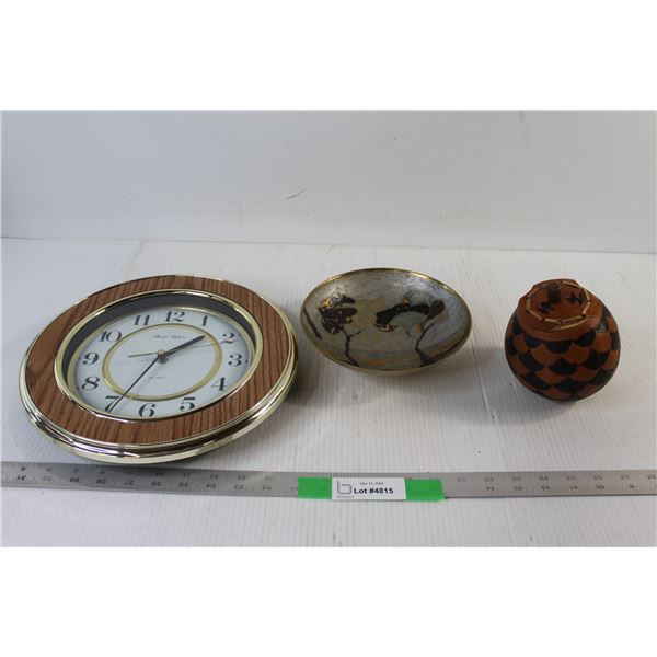Decorative Bowl, Clock - Still works, Pumpkin Decorated Container