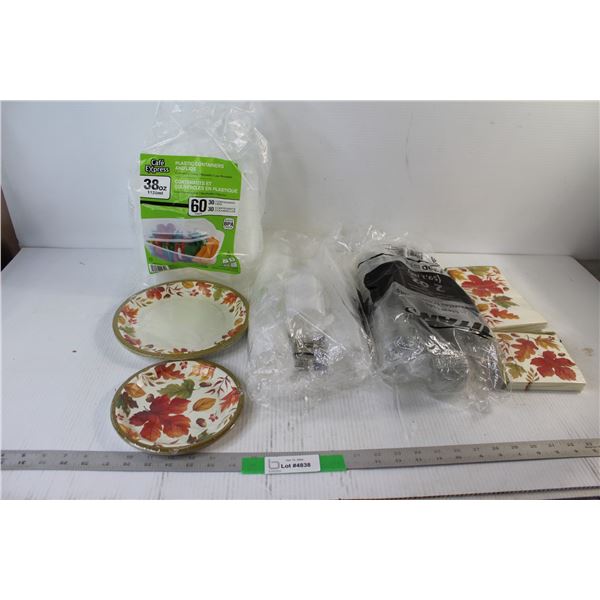 Plastic Plates and Napkins, Servin Cups and Lids, Plastic Containers and Lids