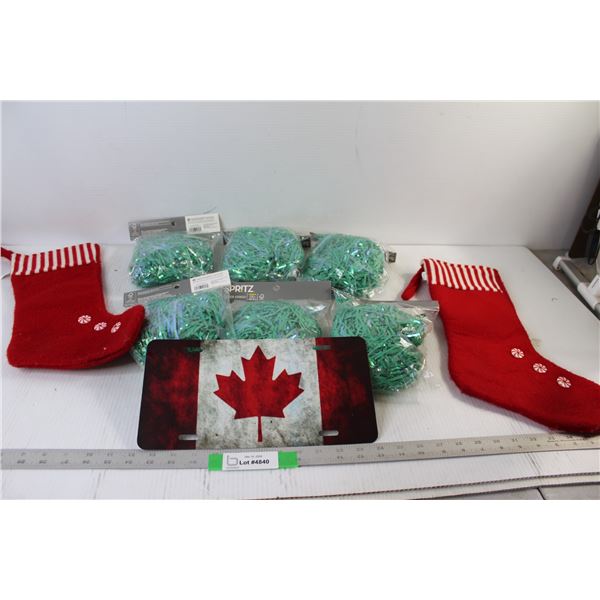 Paper Shred, (2) Christmas Stockings, Canadian Sign - 12" x 6"
