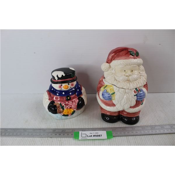 (2) Ceramic Christmas Themed Cookie Jars, Santa Claus, Snowman, Tallest Is 8'' Tall