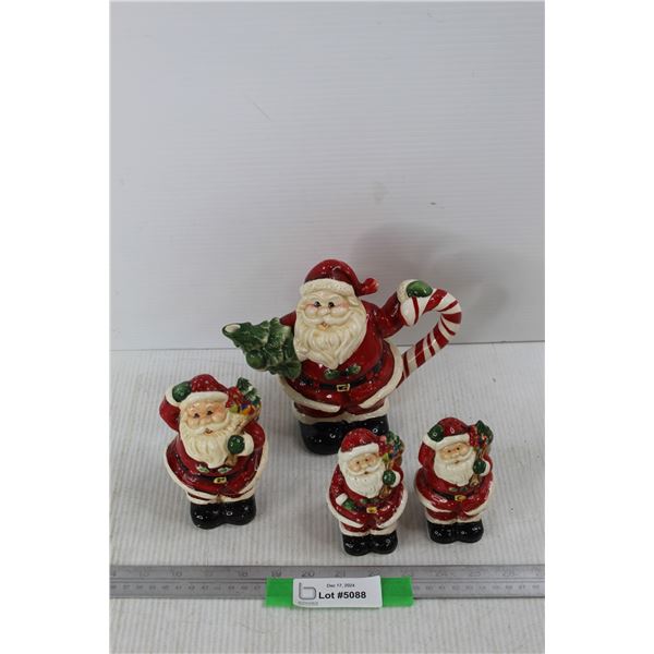 Ceramic Santa Claus Teapot, Sugar Dish & Salt And Pepper Shakers
