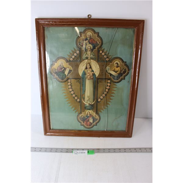 Framed Religious Art - 22" x 18" - Glass Is Cracked