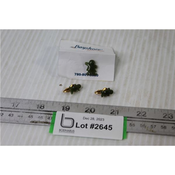 Vintage Jade Pin & Jade Clip-On Earrings (Indigenous Figures)