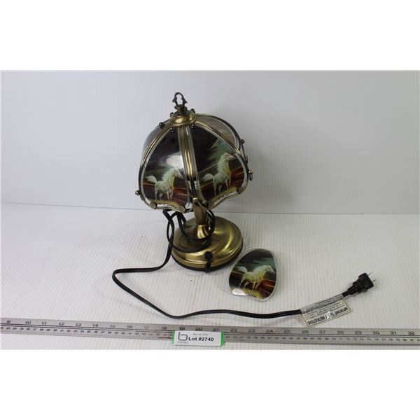 Small Lamp w/Horse Themed Glass (missing one nut for glass piece)
