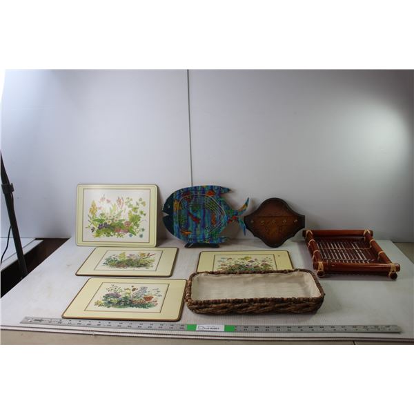 Wood Home Decor, (4) Painting Placemats, Misc.