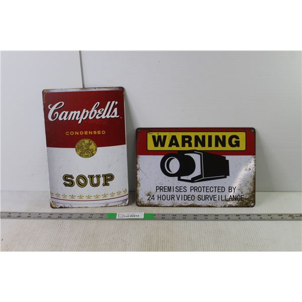 Campbell's Soup & Surveillance Tin Signs 12" x 8"