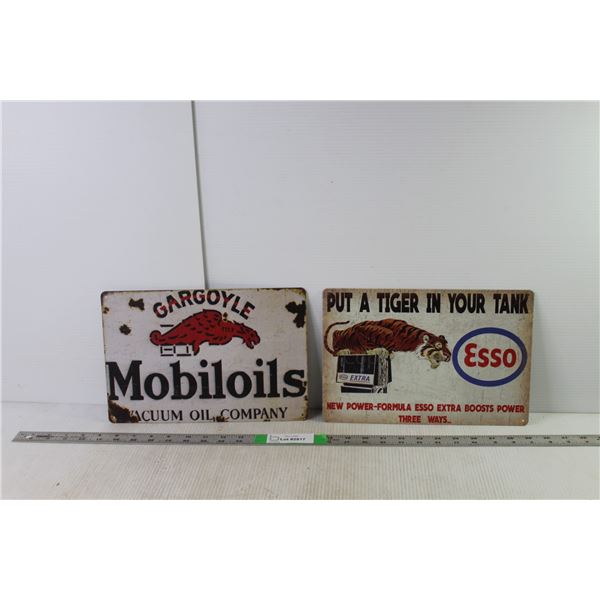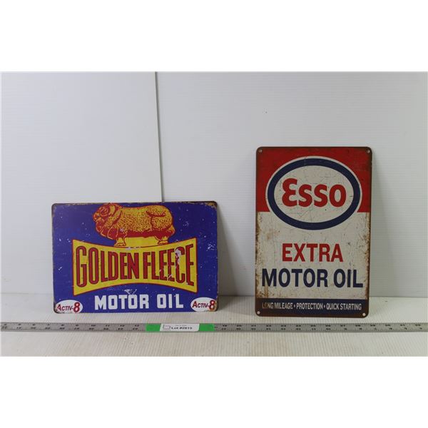 Golden Fleece & Esso Motor Oil Tin Signs 12" x 8"