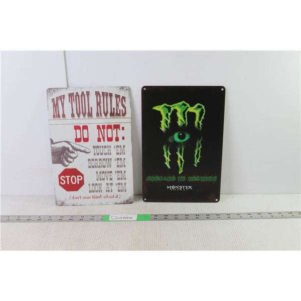 Toolbox & Monster Energy Tin Signs 12" x 8"