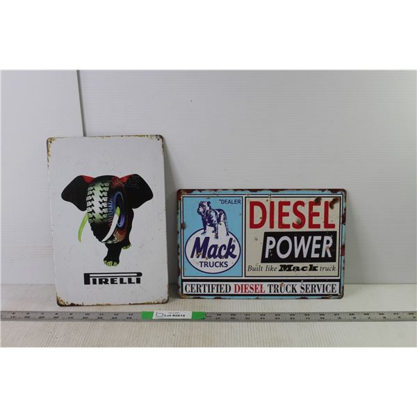 Mack Trucks & Pirelli Tin Signs 12" x 8"