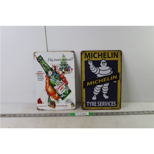 Michelin & Canada Dry Tin Signs 12" x 8"
