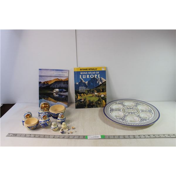 Nesting Dolls, Hebrew Seder Plate, Travel Books