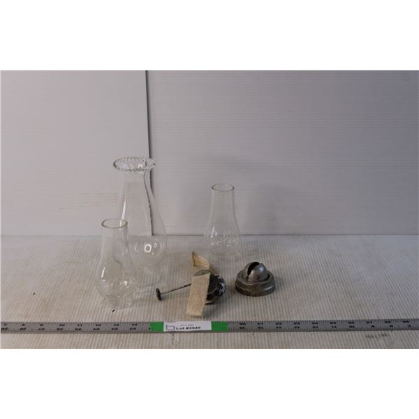 (3) Lamp Chimneys (2) Kerosene Lamp Burners