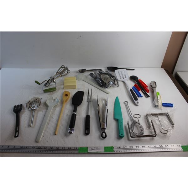 Tongs, Knives, Whisks, Potato Peeler, Spatulas and Misc.