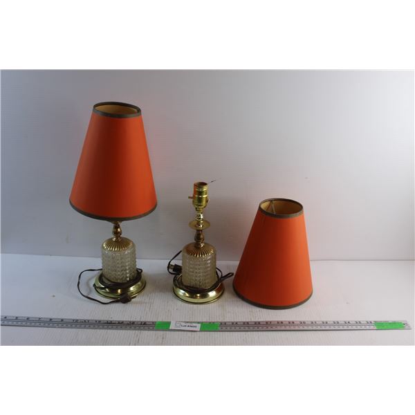 Pair of Vintage Brass and Glass Lamps - Tested