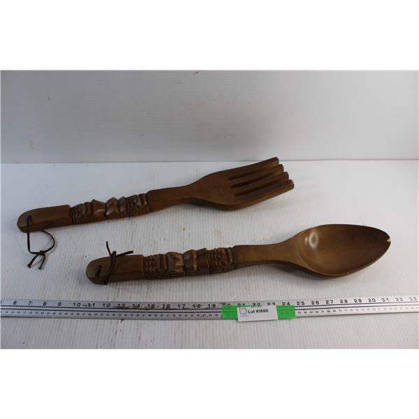 Carved Wood Spoon and Fork Decor