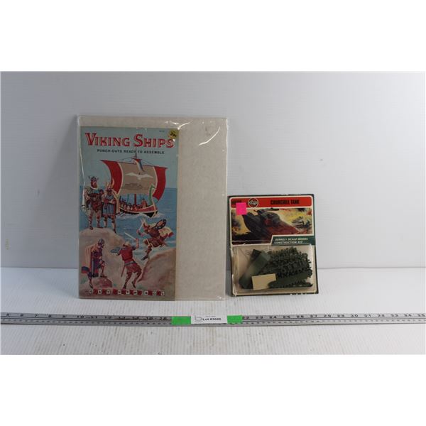 Vintage Viking Ships Book and Churchill Tank Assembly Model