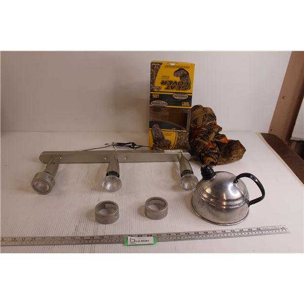Camo Seat Cover, 3-Light Ceiling Lamp, Kettle