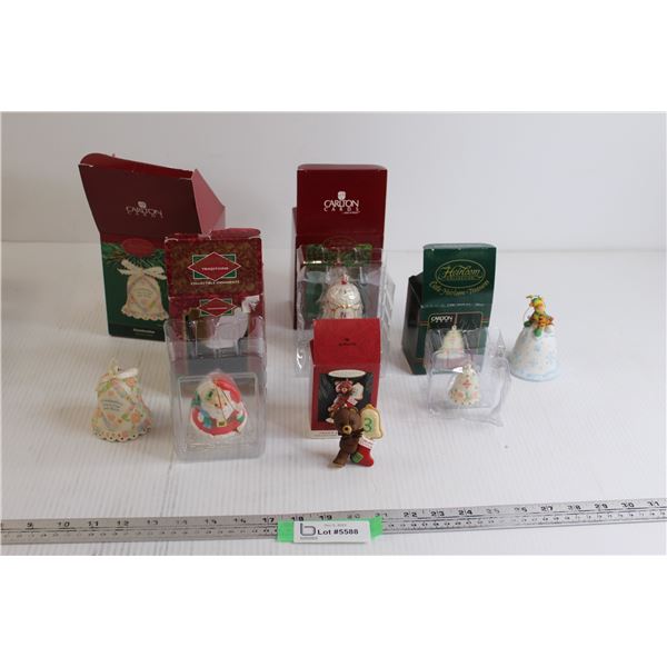 (2) Light Up Star Garland Strands - ([1] Works, [1] Untested), (8) Christmas Ornaments