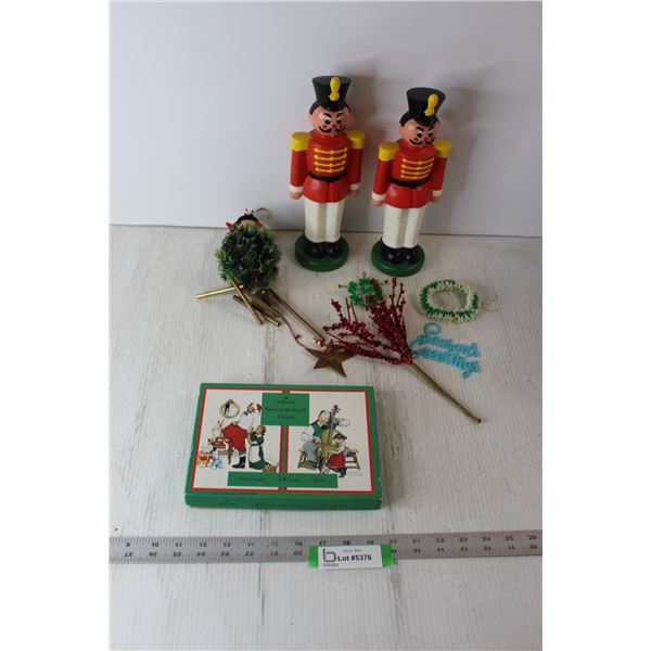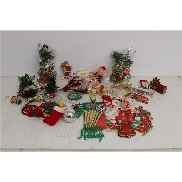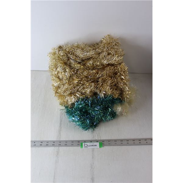 5372 - Assortment of Vintage Christmas Items - Garlands, Tinsel, Ribbons, Trays, Table Cloth, Electric LighBodnarus Auctioneering & Real Estate