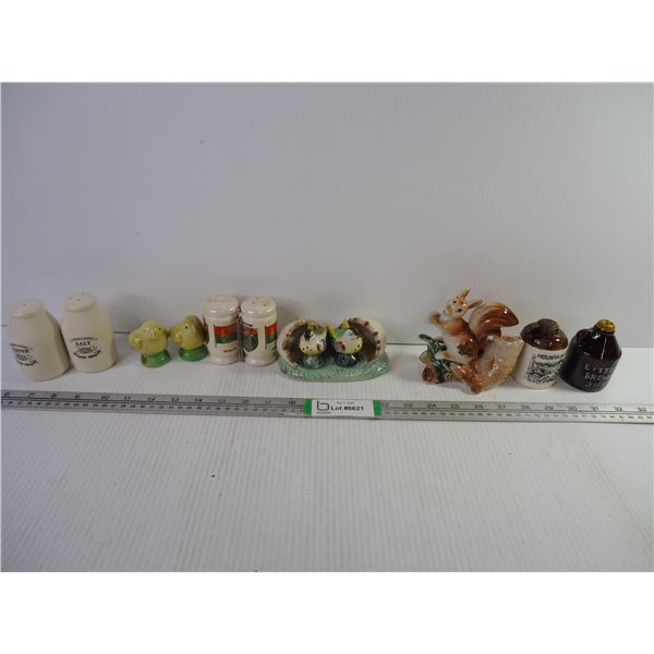 Hen on Nest, Wooden Duck on Nest, and (7) Sets of Salt/Peppers
