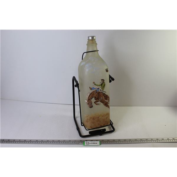 Framed Painted Glass of Hen & Rooster (25 1/4" x 15 1/4")