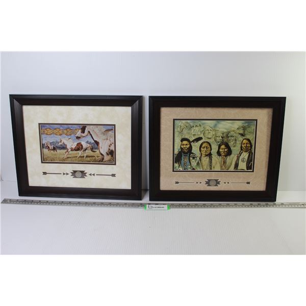 (2) Framed Indigenous Themed Print & Western Setting Print (16 1/4" x 13 1/4")