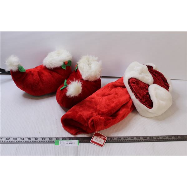 (2) Santa Hats, (5) Cloth Gift Bags (16" x 12")
