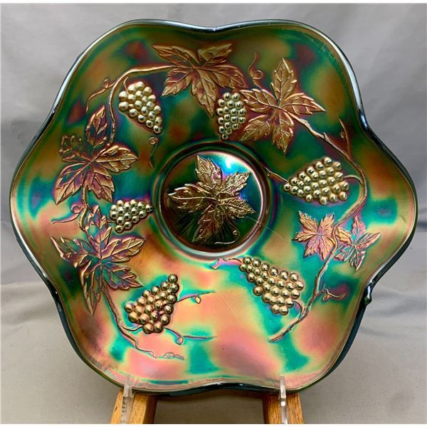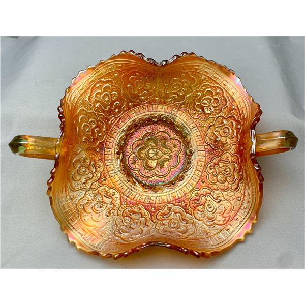 Fenton Uranium Carnival Glass Persian Medallion 2-Handled Nappy - 1907