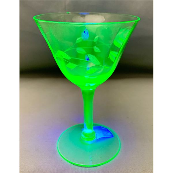 Rare Depression Uranium Glass Wheel Cut Stemmed Wine Glass - 1930s