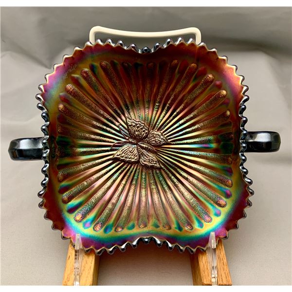 Northwood Amethyst Carnival Glass Butterfly 2-Handled Nappy - 1910