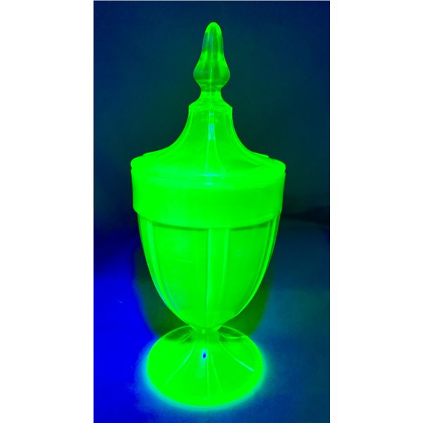 Northwood Uranium Vaseline Stretch Glass 1 Pound Covered Candy Dish - 1920s