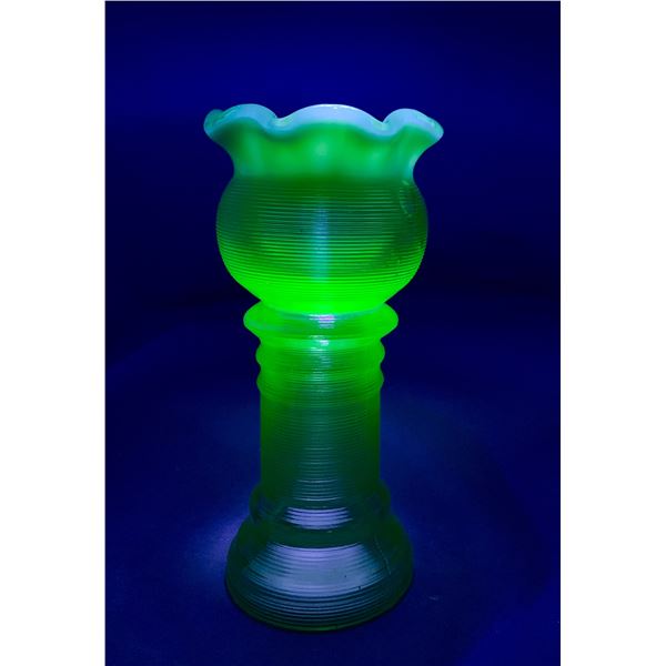 Northwood Rare Green Opal Uranium Glass Spool Threaded Hyacinth Vase - 1890s