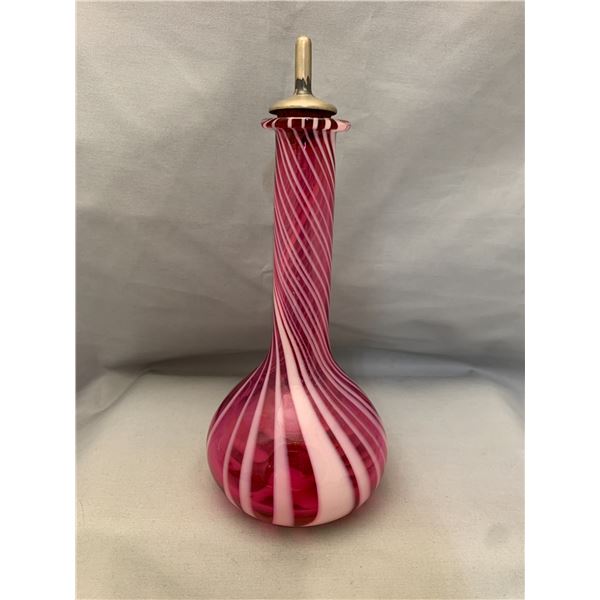 Northwood Victorian Cranberry Swirled Barber Bottle with Pourer - 1890s