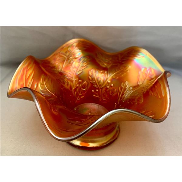 Fenton Amber Yellow Carnival Glass Dragon and Lotus Ruffled Bowl - 1907