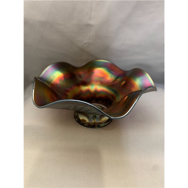 Dugan Cobalt Blue Carnival Glass Dogwood Sprays Pedestal Ruffled Bowl - 1909