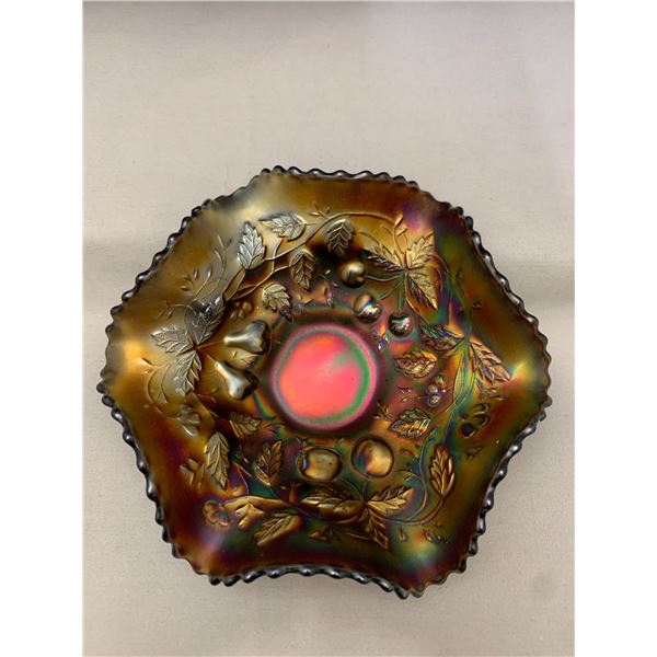 Northwood Amethyst Carnival Glass Three Fruits Small Ruffled Berry Bowl - 1910