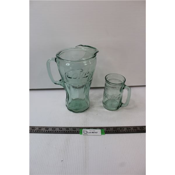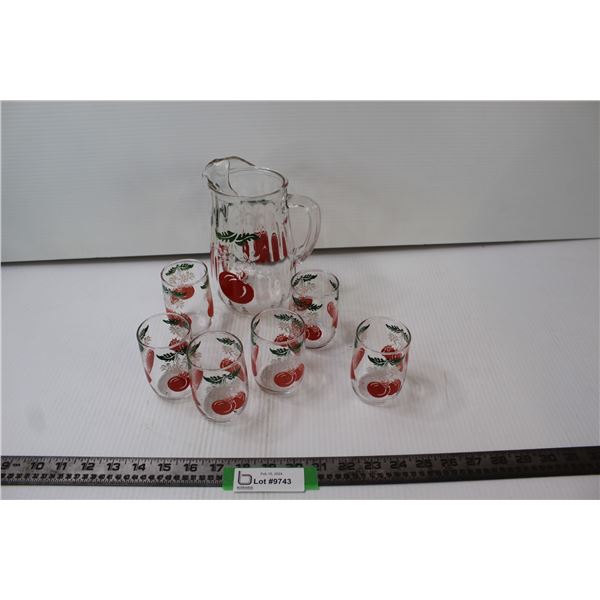 Anchor Hocking Glass Pitcher & (6) Matching Juice Glasses - Tomato Pattern